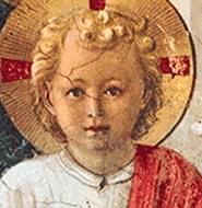 The face of the child Christ in our issue "The Child" is from Beato Angelico's Madonna Enthroned in the Museo San Marco (c. 1440). It is sourced from the Yorck Project viaWikimedia Commons, and is therefore in the public domain (details).