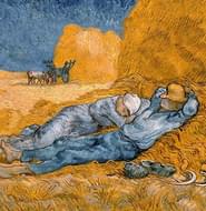 For Péguy, sleep is an act of surrendering our cares to God. How trusting then are these two souls as they nap after a morning of work both hard and fruitful (if the size of the haystacks is any indication!). Vincent van Gogh's Noon--Rest from Work (after Millet) was chosen as a fitting tribute to our issue on Good Work, Fruitful Rest. The image was sourced through Wikimedia Commons.